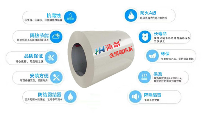 海耐納米隔熱瓦中間基板采用高強度金屬板,表面材料是可以選用具有很高的反射系數的能將熱量反射出去的鋁箔或鍍金屬的聚酯膜或具有特殊耐候的隔熱冷膜。...